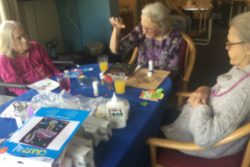 Residents staff and relatives enjoying a few beats of the drum and making some decorations for Black History Month. Various activities at Downsvale Nursing care home.